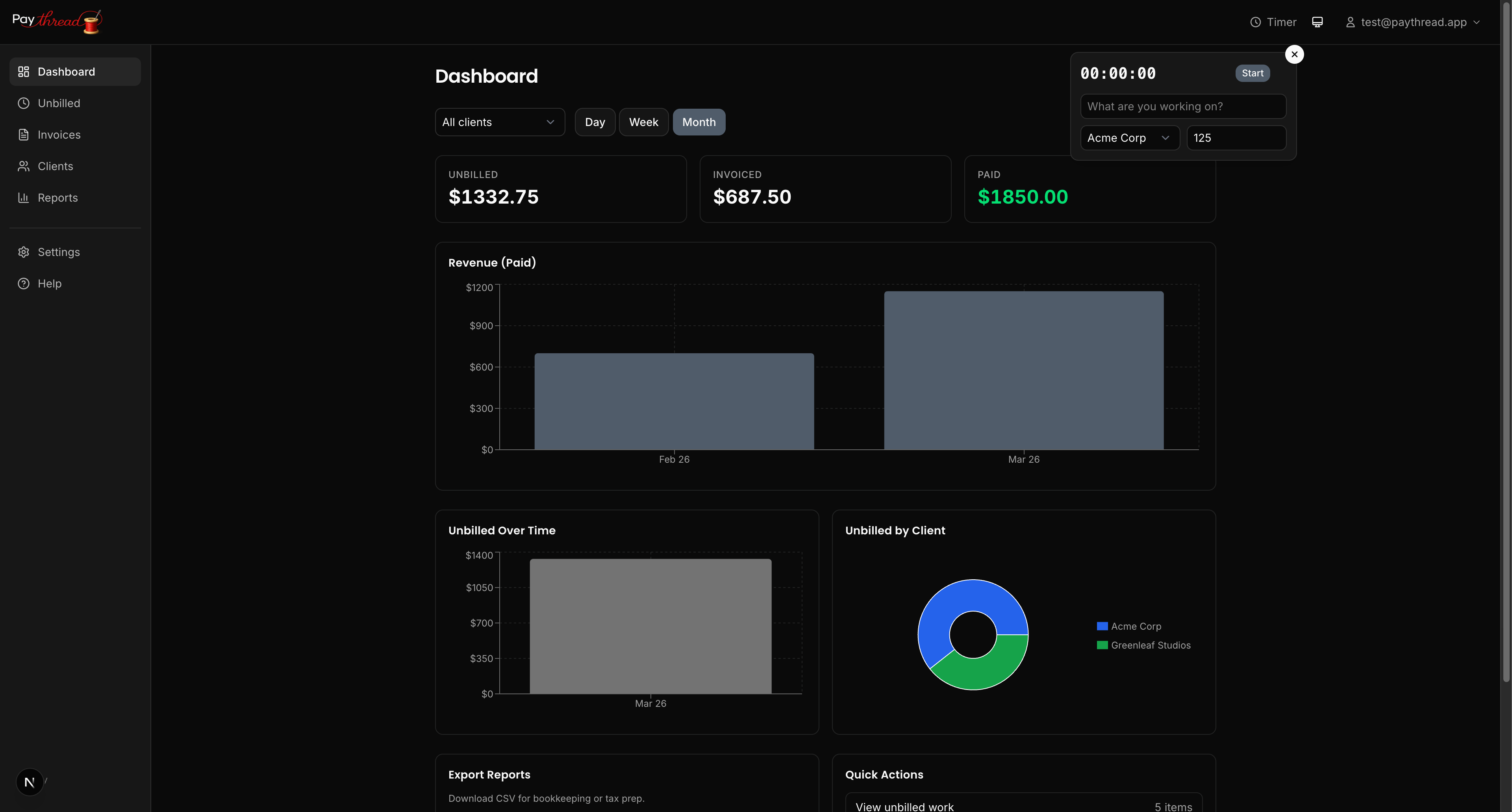 Paythread is built for freelancers who want to spend less time on invoicing and more time on the work that matters. This guide walks you through the essential setup so you can start tracking time and sending invoices right away.